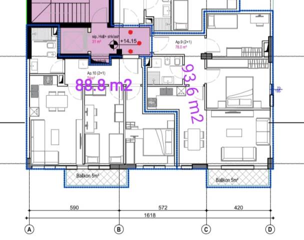 The total surface of the apartments is 96.3 m2 and 88.8 m2, respectively.