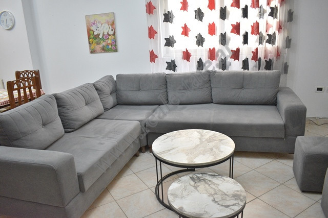 Apartamenti eshte i shtruar me pllake dhe ofrohet totalisht i mobiluar.