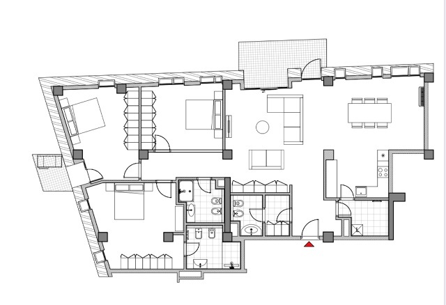 Ka siperfaqe totale prej prej 220m2 dhe te brendshme prej 201.88 m2 qe organizohet ne sallon, kuzhine, korridor, 3 dhoma gjumi, 3 tualete, depo dhe 2 ballkone.
