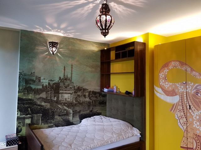 Vila është e shtruar tërësisht me parket dhe muret janë të dekoruara me stil